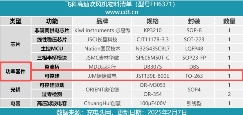在颜值与性能兼具的个护赛道,一场关于「风」的革命正在发生。国产品牌飞科推出的高速吹风机FH6371,凭借11万转无刷电机、六种风温风模式组合,迅速圈粉新一代用户。拆解发现,在这款产品的智能电力调控核心中,MYBALL迈博微电可控硅JST139E-800E如同整个电路的“智能指挥官”,精准调度每一股电流,安静却强大地支撑着整个吹风机的流畅运转。