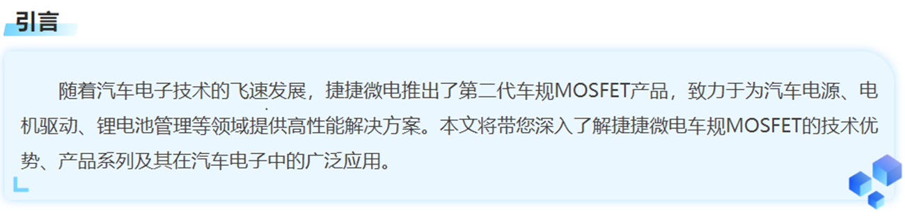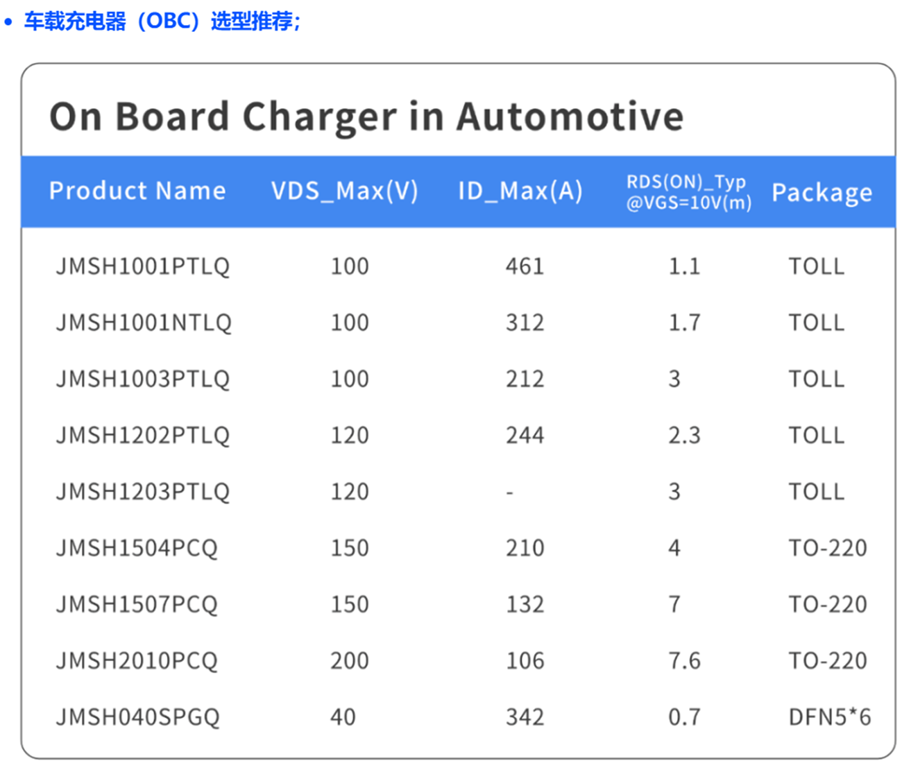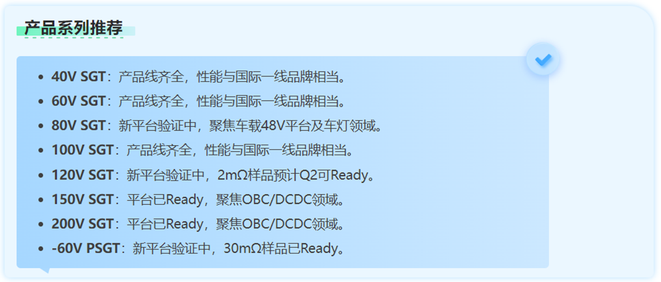 目前,JJM 已成功实现 200多款 SGT车规产品的量产,并持续发力,在 LFPAK 和 Top – Cooling 封装方面积极布局,不断开发新品,以创新引领行业发展。