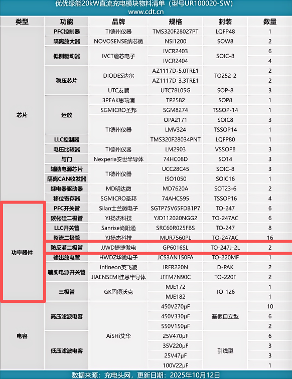 随着新能源汽车市场快速发展,大功率直流快充技术正迎来全新突破。近日,优优绿能推出的20KW直流充电模块UR100020-SW(G2)以其卓越性能受到行业瞩目。在这款高密度、高可靠性电源模块的核心电路中,MYBALL迈博微电GP6016SL高效整流二极管凭借1600V高压阻断与60A大电流承载能力,承担起输出端防反灌保护的关键任务,为整机稳定运行树立起一道坚实屏障。